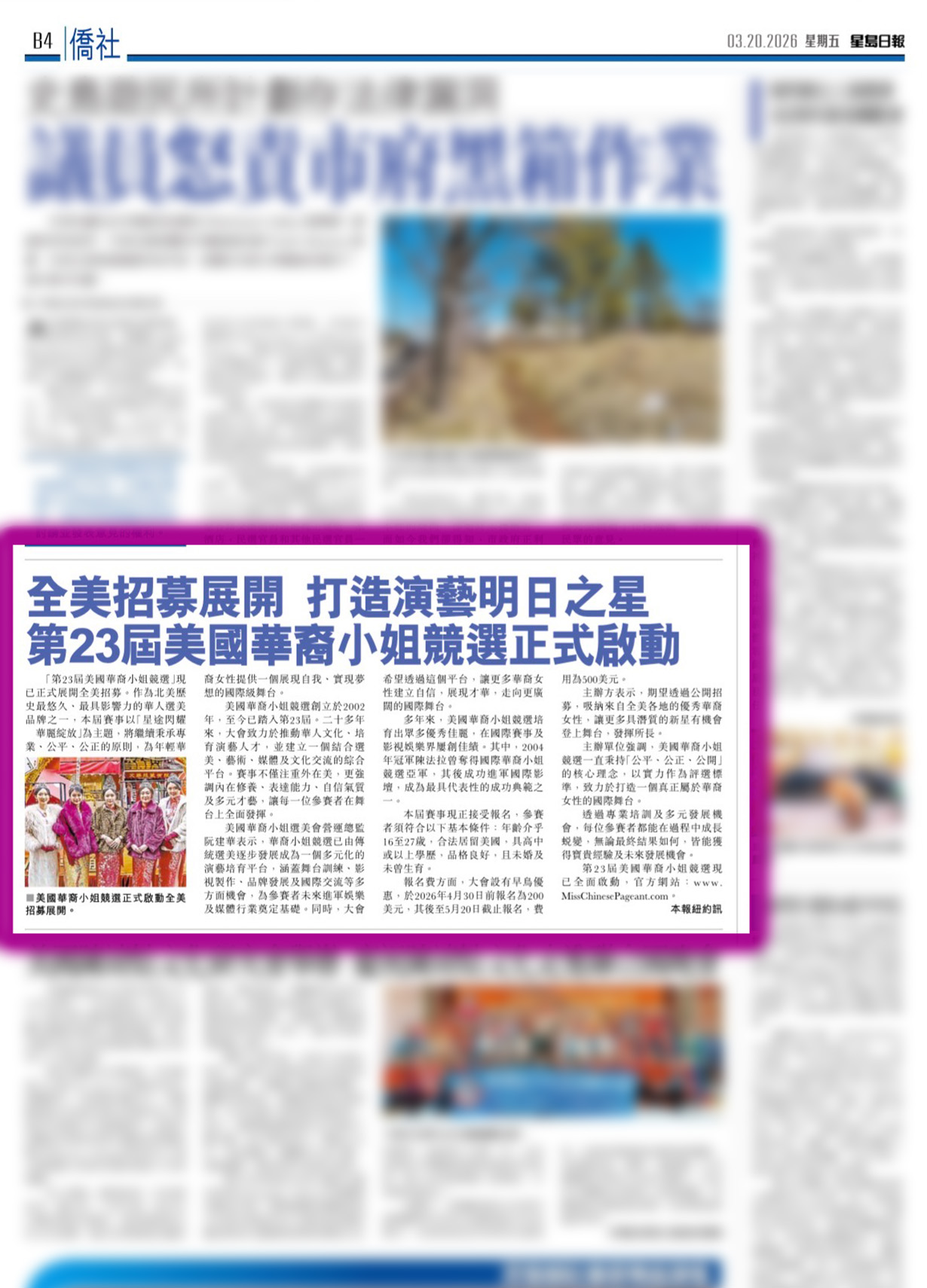 The 23rd Miss Chinese Beauty Pageant Officially Launches