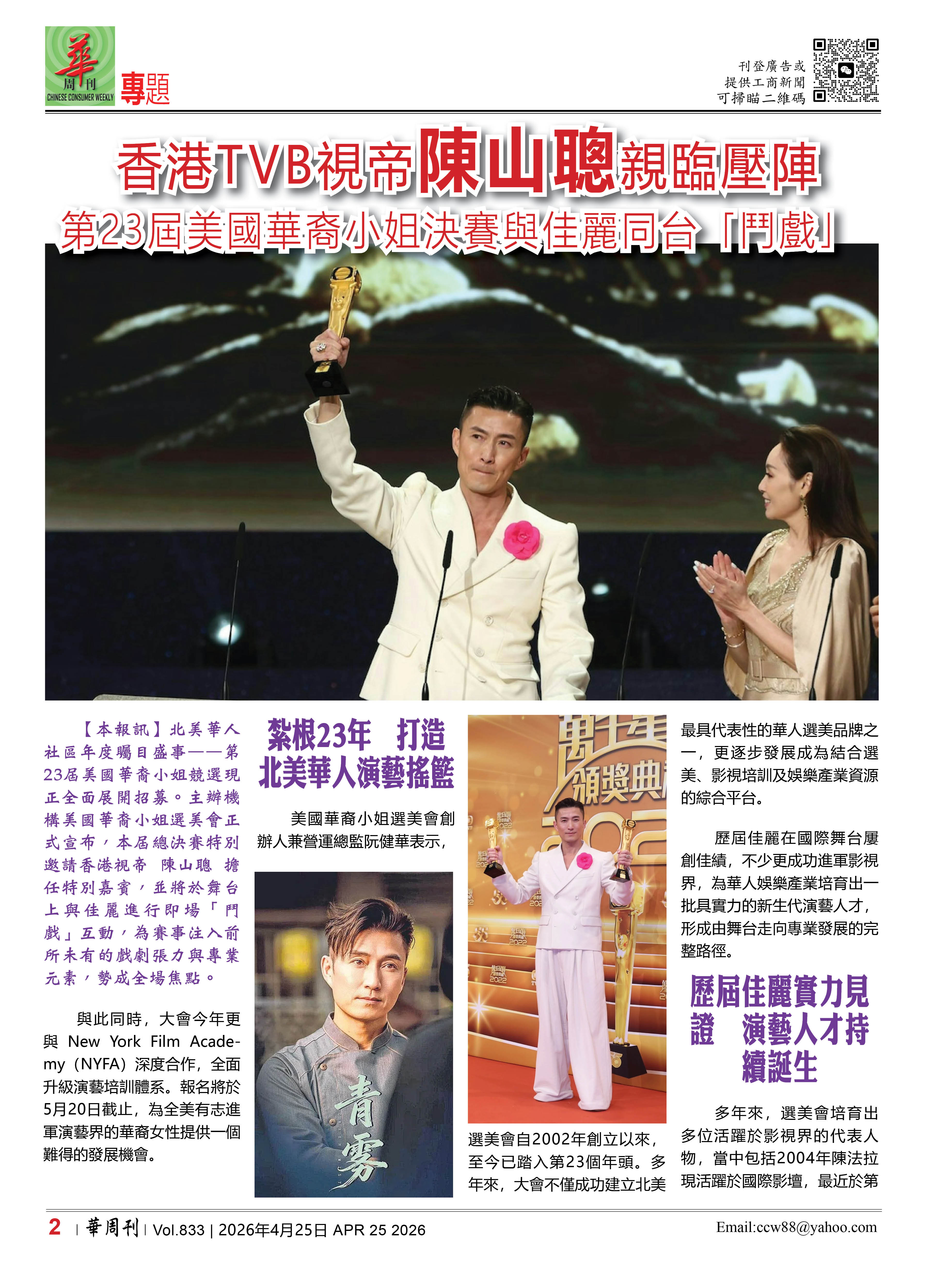 香港TVB視帝陳山聰親臨壓陣第23屆美國華裔小姐決賽與佳麗同台「鬥戲」